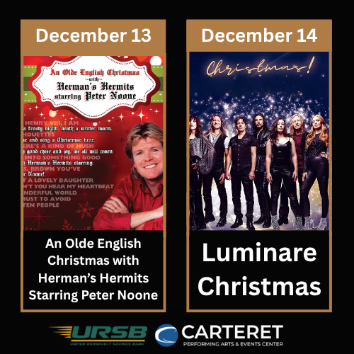 Celebrate the season at The Carteret Performing Arts and Events Center with two unforgettable holiday shows! Enjoy An Olde English Christmas with Peter Noone on December 13, then experience the electrifying Luminare Christmas on December 14. Don’t miss these magical nights of music, memories, and holiday cheer—get your tickets today!