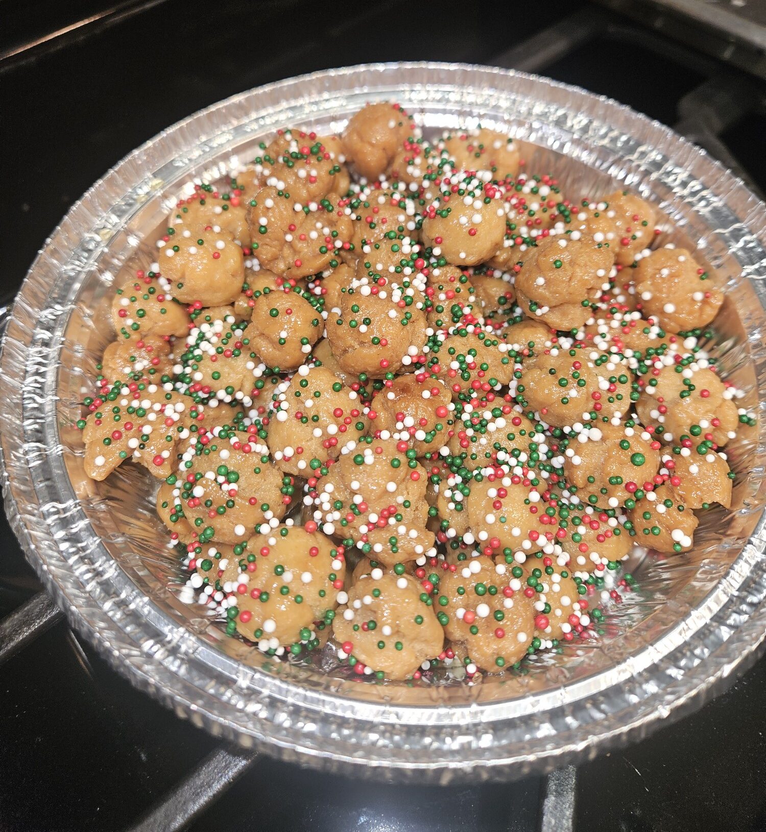 The Feast of the Seven Fishes included jumbo shrimp oreganata, lobster ragu, black ink linguini with rock shrimp, red snapper livornese, swordfish medallions, and panettone with zabaglione.